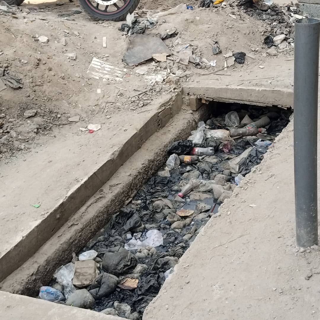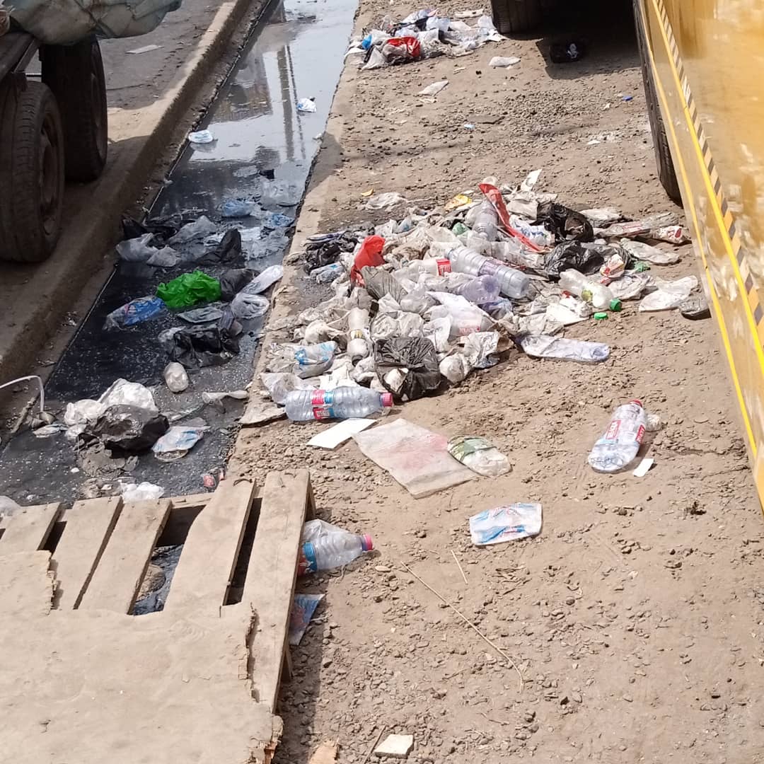 The entrance of the market was mostly filthy with rubbers being swung around by air from the passing cars. One was first welcomed to the market by the malodorous smell that emanates from the chocked gutters and piles of waste waiting to be collected. The situation looks a bit different as there were no piles of waste throughout the market. Nonetheless, some gutters around the entrance and a few meters away from the market were still choked with rubbish, and shop owners sat aloof.