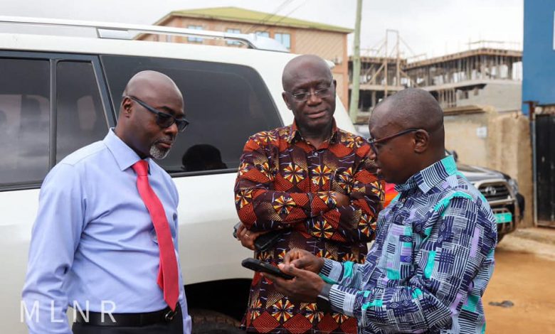Following a press conference to strongly condemn encroachment activities on government-owned land at Mempeasem, a suburb of Accra, and also declaring the government’s determination to win back the acres of land, The Deputy Minister for Lands and Natural Resources, Hon. Benito Owusu-Bio paid a working visit to Mpehuasem on Wednesday, 13th July 2022, to witness for himself the situation at the site.