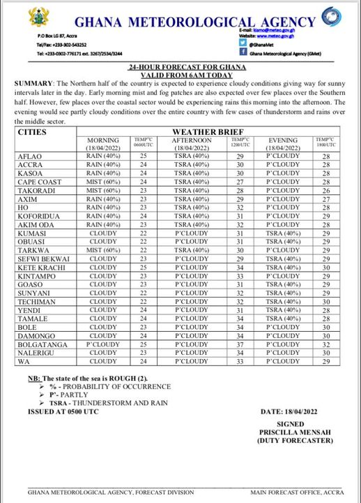 Ghana Meteorological Agency (GMet) Releases Weather Update for Easter Monday